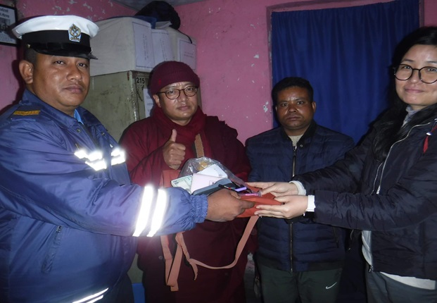 आइतबार दिउँसो ३ बजे, ठमेलबाट बौद्धसम्म जाने क्रममा बा १ ज ५८३ नम्बरको ट्याक्सीमा साङ्गे डोल्मा लामाको एक लाख नगद सहित महत्वपूर्ण सामान रहेको झोला छुटेको थियो । धनीले काठमाण्डौ उपत्यका ट्राफिक प्रहरी कार्यालयमा दिएको निवेदनका आधारमा CCTVफुटेजको सहायताबाट खोजतलास गरी सामान फेला पारेर सम्बन्धित धनीलाई बुझाएको हो ।