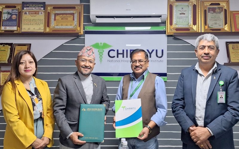 काठमाडौं । सांग्रिला डेभलपमेन्ट बैंक लिमिटेड र चिरायु नेशनल हस्पिटल तथा मेडिकल इन्स्टिच्यूट प्रालिबीच बैंकका ग्राहक महानुभाव, कर्मचारी तथा कर्मचारीका परिवारलाई विभिन्न किसिमका स्वास्थ्य सेवा प्रदान गर्ने उद्देश्यले सम्झौता भएको छ।