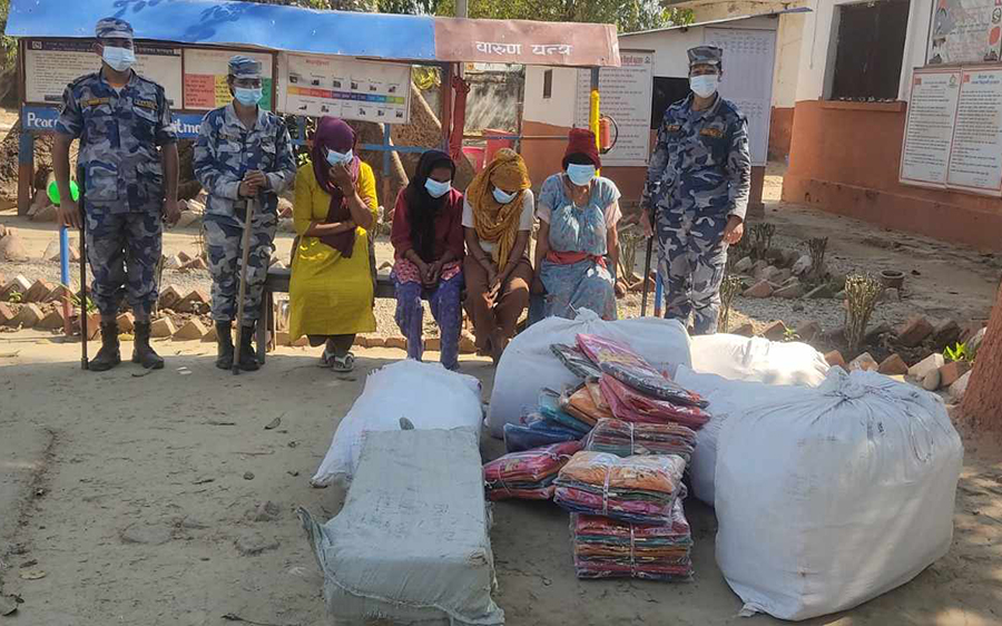 सामान ओसारपसारमा संलग्न धनगढी उपमहानगरपालिका -२ पुरानो भन्सार रोड बस्ने महेश्वरी बिष्ट, तुलसी भट्ट, धना साउद र गौरी ओझालाई नियन्त्रणमा लिइएको सशस्त्र प्रहरी बल नेपाल नम्बर ३४ गणका सशस्त्र प्रहरी नायब उपरीक्षक-डीएसपी) खेम ठकुल्लाले बताए ।
