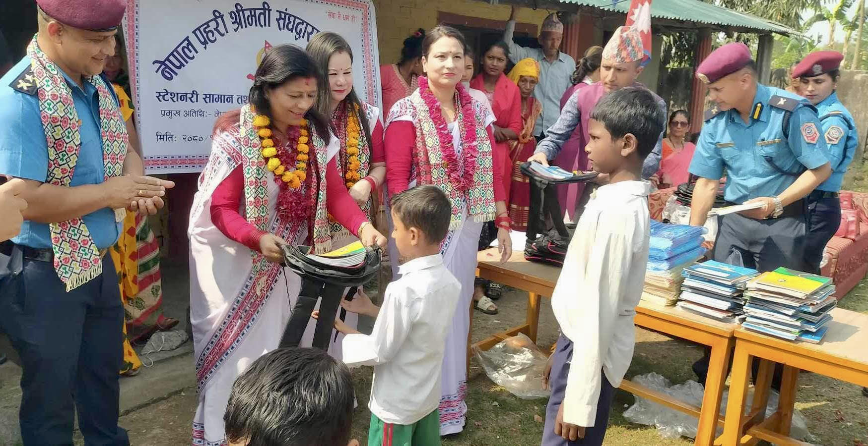 नेपाल प्रहरी श्रीमती संघलाई शैक्षिक सामग्री हस्तान्तरण
