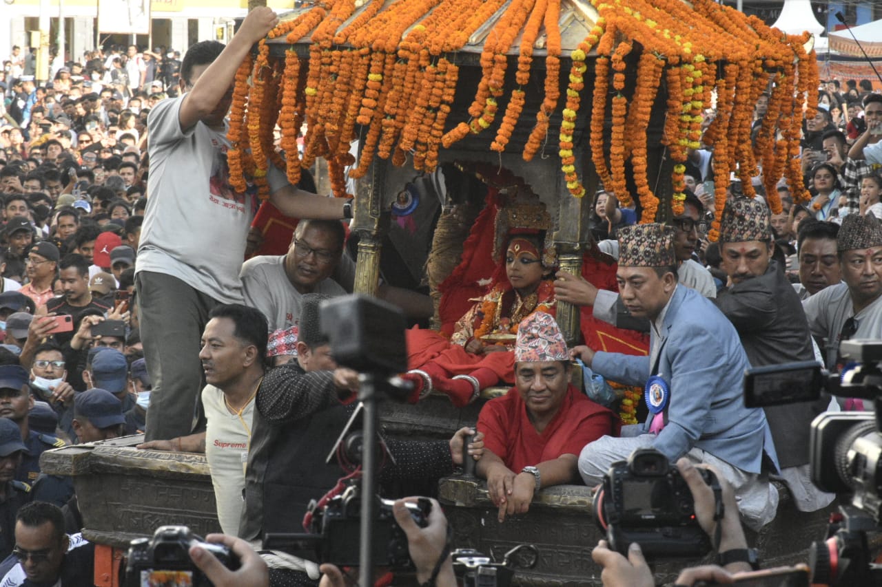 कुमारीलाई भैरवको दर्शन गराउन काठमाडौँ महानगरपालिका–१२ स्थित पचली पीठबाट भैरवको जात्रा गरी मङ्गलबार बेलुका हनुमान ढोका पुर्याइएको हो । यसरी कुमारीलाई भैरवको दर्शन गराउँदा कुमारीलाई शक्ति प्राप्त हुने जनविश्वास छ ।