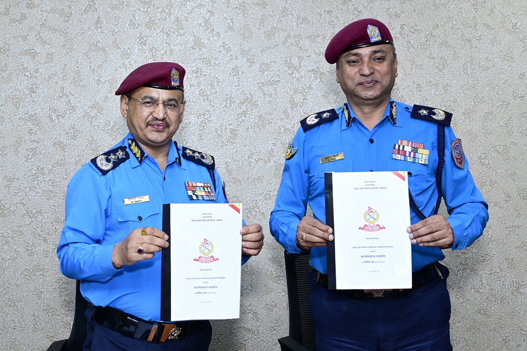 आर्थिक वर्ष २०८२/०८३ को कार्यसम्पादन सम्झौतामा प्रहरी महानिरीक्षक दिपक थापा र राष्ट्रिय प्रहरी प्रशिक्षण प्रतिष्ठानका कार्यकारी निर्देशक प्रहरी अतिरिक्त महानिरीक्षक सुदिप गिरी, काठमाडौं उपत्यका प्रहरी कार्यालयका प्रमुख प्रहरी अतिरिक्त महानिरीक्षक टेक बहादुर तामाङ, नेपाल प्रहरी अस्पतालका मेडिकल डाइरेक्टर प्राविधिक प्रहरी अतिरिक्त महानिरीक्षक डा. सुन्दर प्रसाद ह्योजु, केन्द्रीय अनुसन्धान ब्यूरोका प्रमुख प्रहरी अतिरिक्त महानिरीक्षक चन्द्र कुबेर खापुङ, नेपाल प्रहरी प्रधान कार्यालयस्थित प्रशासन विभागका प्रमुख प्रहरी अतिरिक्त महानिरीक्षक कृष्ण हरि शर्मा, मानवस्रोत विकास विभागका प्रमुख प्रहरी अतिरिक्त महानिरीक्षक दान बहादुर कार्की, अपराध अनुसन्धान विभागका प्रमुख प्रहरी अतिरिक्त महानिरीक्षक राजन अधिकारी र कार्य विभागका प्रमुख प्रहरी अतिरिक्त महानिरीक्षक शिद्धि बिक्रम शाहबीच हस्ताक्षर भएको हो । साथै प्रहरी महानिरीक्षक दिपक थापा र नेपाल प्रहरी प्रधान कार्यालय प्रदेश समन्वय विभागका प्रमुख प्रहरी अतिरिक्त महानिरीक्षक डा. मनोज कुमार केसी तथा ७ वटै प्रदेश प्रहरी कार्यालयका प्रमुखहरू तथा प्रतिनिधिबीच भर्चुअल माध्यमबाट हस्ताक्षर भएको हो ।