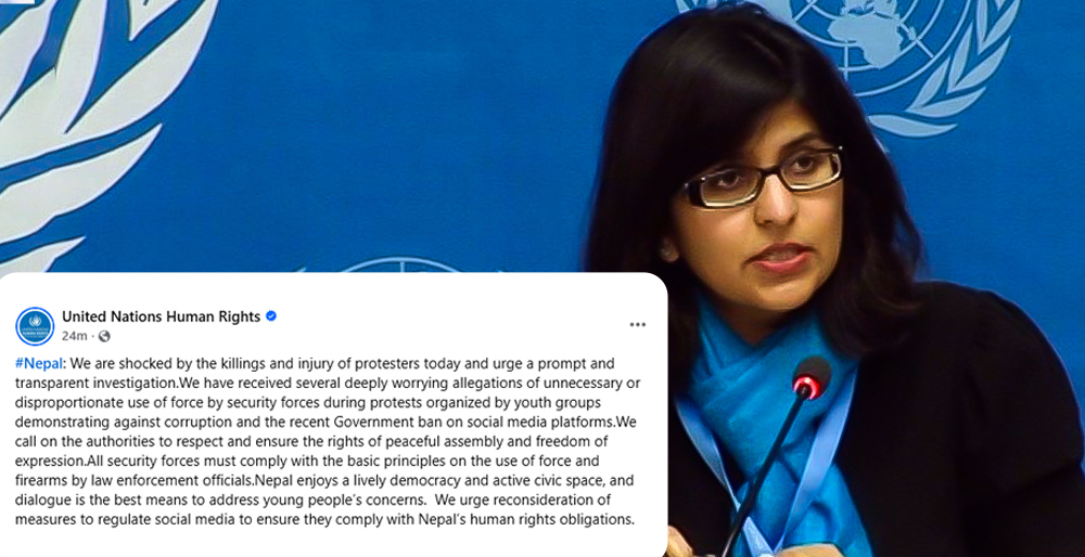 संयुक्त राष्ट्रसंघीय मानव अधिकारकी प्रवक्ता रभिना शामदसानीलले वक्तब्यमा सुरक्षा निकायहरूले भ्रष्टाचारविरुद्ध र हालैको सरकारको सामाजिक सञ्जाल प्रतिबन्धको विरोधमा युवाग्रुपहरूले आयोजना गरेका प्रदर्शनहरूमा अनावश्यक वा असंगत बल प्रयोग गरिएको गम्भीर र चिन्ताजनक आरोपहरू प्राप्त गरेको जनाएकी छिन् ।