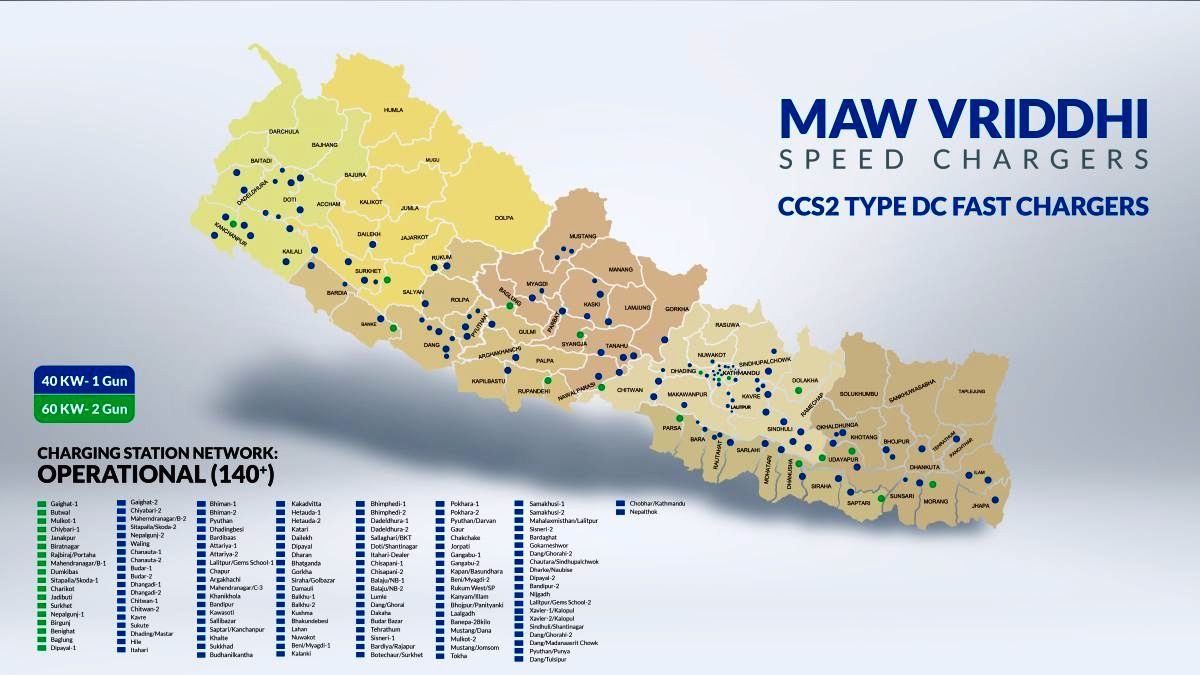 चार्जिङ स्टेसनहरूमा धेरै ब्रान्डका ईभीले प्रयोग गर्न मिल्ने फास्ट सीसीएस–२ चार्जरहरू छन् । यी स्टेसनहरू पूर्व-पश्चिम राजमार्ग, प्रमुख पर्यटन मार्गहरू र नाका क्षेत्रजस्ता रणनीतिक स्थानमा राखिएका छन्, जसले २४/७ पहुँच र भरपर्दो सेवा सुनिश्चित गर्छन् । सुविधालाई ध्यानमा राखेर प्रत्येक स्टेसनलाई केन्द्रीय नियन्त्रण प्रणालीसँग जोडिएको छ, जसले वास्तविक समयमा निगरानी र ग्राहक सहायता उपलब्ध गराउँछ ।
