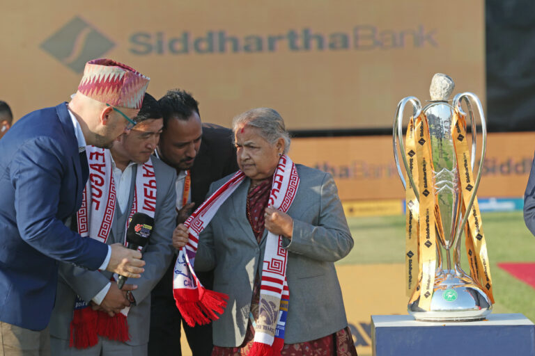 काठमाडौं । प्रधानमन्त्री सुशीला कार्कीले नेपाल प्रिमियर लिगको दोस्रो संस्करण उद्घाटन गरेकी छिन् ।