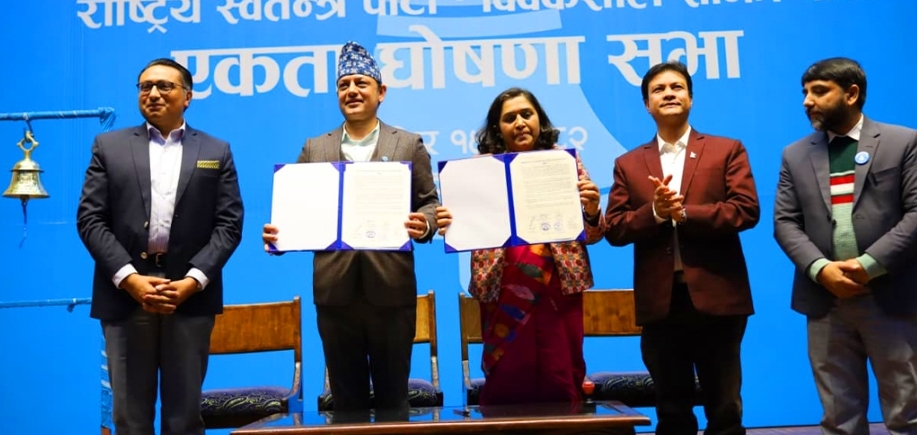 काठमाडौं। राष्ट्रिय स्वतन्त्र पार्टी (रास्वपा) र विवेकशील साझा पार्टीबीच एकता भएको छ । आज औपचारिक रुपमा काठमाडौँस्थित राष्ट्रियसभा गृहमा आयोजित कार्यक्रममार्फत दुवै दलका शीर्ष नेताले एकता घोषणापत्रमा हस्ताक्षर गरे ।