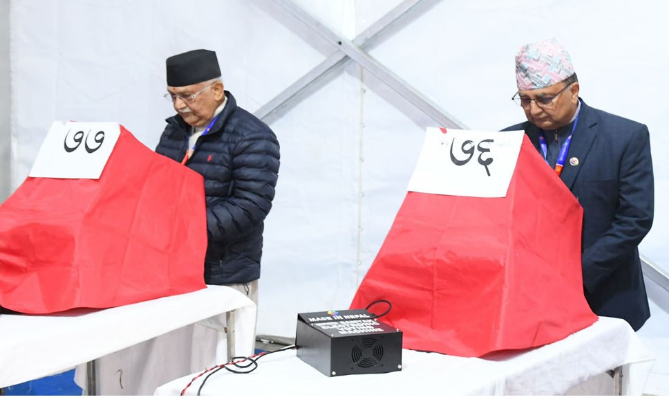 निर्वाचन आयोगले प्रारम्भिक मतपरिणाम सार्वजनिक गरेको छ । आयोगका अनुसार, हालसम्म अध्यक्षका उम्मेदवार केपी शर्मा ओलीले ३३३ र वरिष्ठ उपाध्यक्ष ईश्वर पोखरेलले ११० मत प्राप्त गरेका छन् ।