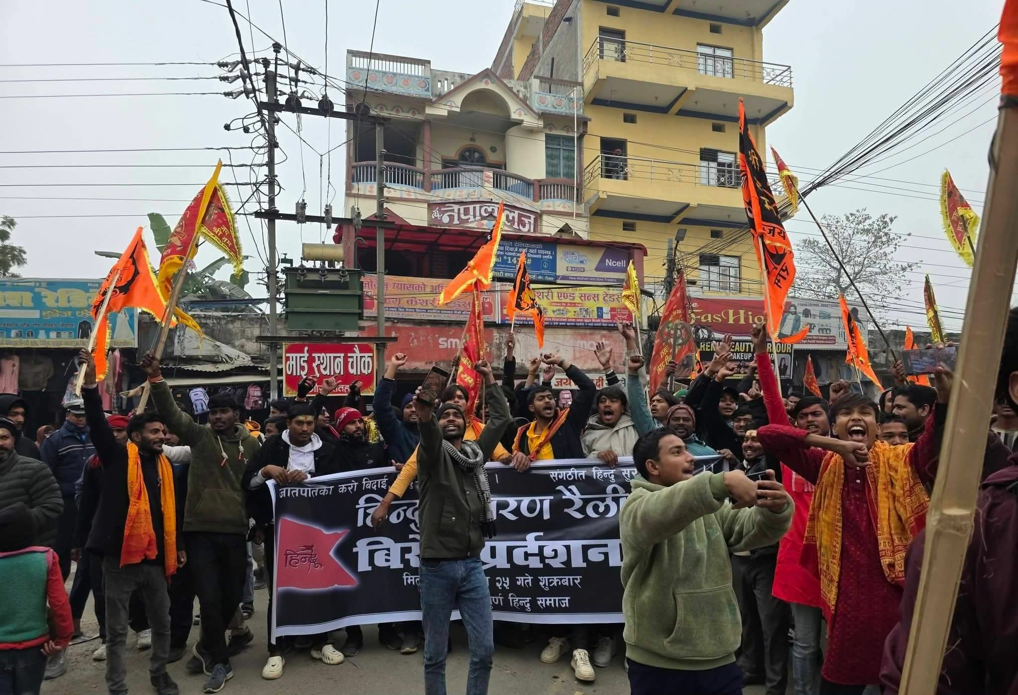 रौतहट । नेपालमा केही स्थानमा “हिन्दू भगाऊ, देश बचाऊ” भन्ने नारा लगाइएको घटनाको विरोधमा रौतहट जिल्लाको सदरमुकाम गौरमा शुक्रबार हिन्दू जागरण र्याली तथा विरोध प्रदर्शन आयोजना गरिएको छ।