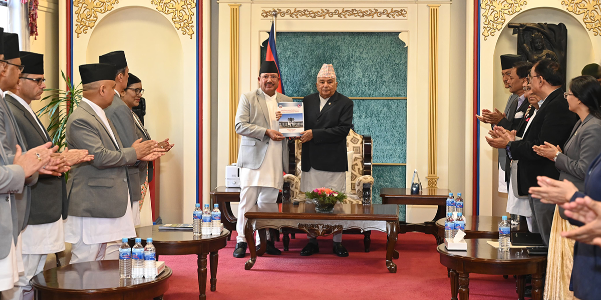 काठमाडौं । राष्ट्रपति रामचन्द्र पौडेल समक्ष निर्वाचन आयोगले फागनु २१ गते सम्पन्न ‘प्रतिनिधिसभा सदस्य निर्वाचन २०८२’ को प्रतिवेदन पेस गरेको छ । शितल निवासमा आज आयोजित कार्यक्रममा आयोगका कार्यवाहक प्रमुख आयुक्त रामप्रसाद भण्डारीले सो प्रतिवेदन पेस गरेका हुन् ।