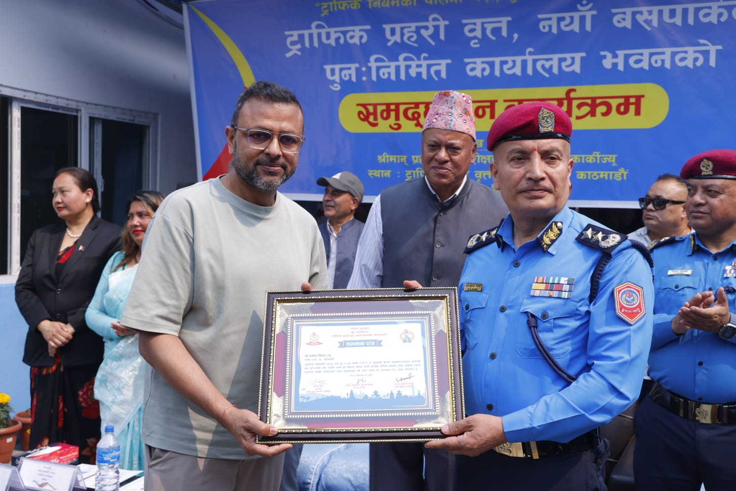 कार्यक्रममा प्रहरी महानिरीक्षक कार्कीले भवन निर्माण कार्यमा सहयोग पुर्याउने विभिन्न महानुभावहरूलाई कदरपत्र एवम् प्रशंसापत्र प्रदान गर्नुभयो ।